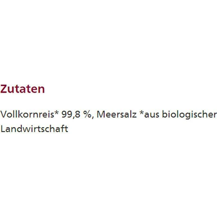 Zutaten: Vollkornreis* 99,8 %, Meersalz