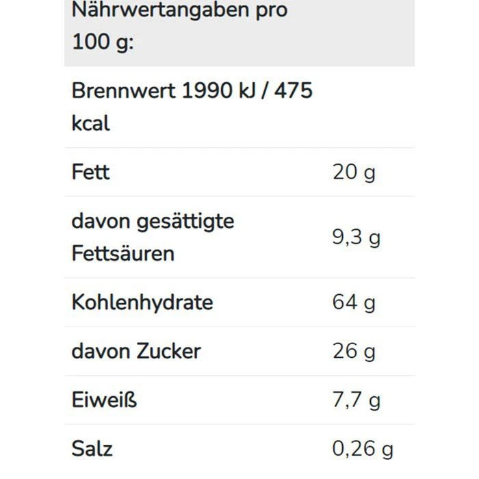 HAFERFLOCKEN 31 %, WEIZENVOLLKORNMEHL 30 %, Zucker, pflanzliches Fett, Invertzuckersirup, WEIZENKEIME, Salz, Backtriebmittel: Natriumcarbonate, Diphosphate, Aroma, Säuerungsmittel: Citronensäure, HÜHNERVOLLEIPULVER, MAGERMILCHPULVER, Gewürz