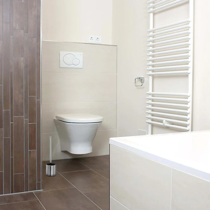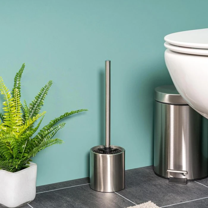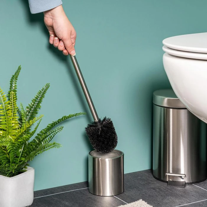 • Eleganter, rostfreier Edelstahlstiel mit wechselbarem, schwarzem Bürstenkopf