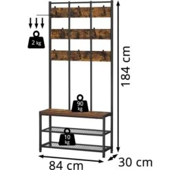 Vasagle Garderobenständer HSR087B01, Vintage, Mit 16 Haken, Metall / Holz, Schwarz / Braun