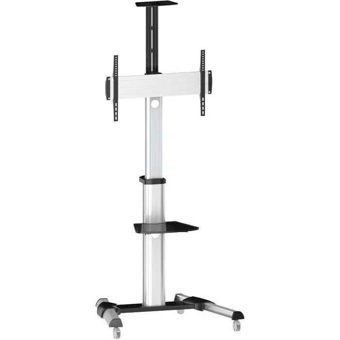 sonstiges: mit verdeckter Kabelführung an der Rückseite, höhenverstellbare Kamerahalterung (29,2 x 15,0 cm), höhenverstellbare Ablage für AV-Geräte bis 5 kg (43,0 x 33,6 cm), feststellbare Laufrollen