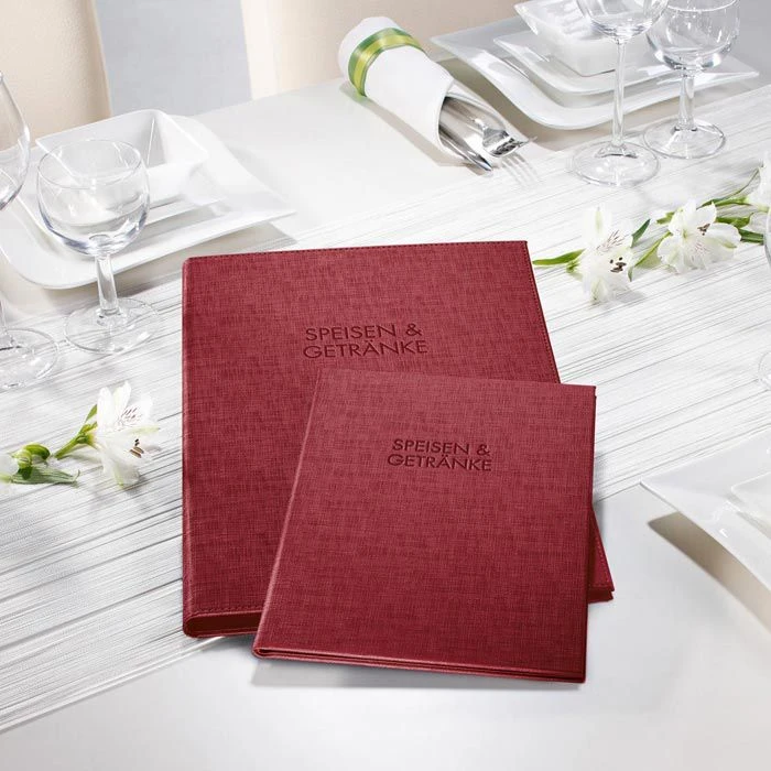 • Mit Blindprägung „Speisen & Getränke“ auf der Vorderseite